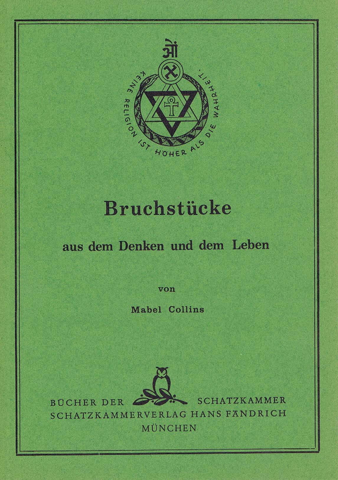 Mabel Collins: Bruchstücke aus dem Leben und DenkenErfahrungen und Erlebnisse eines Schülers auf dem Pfade, dargestellt in sieben Abhandlungen und erzählten Beispielen – wie in den "Fünf Blindheiten" aufeinanderfolgend und bezugnehmend.
