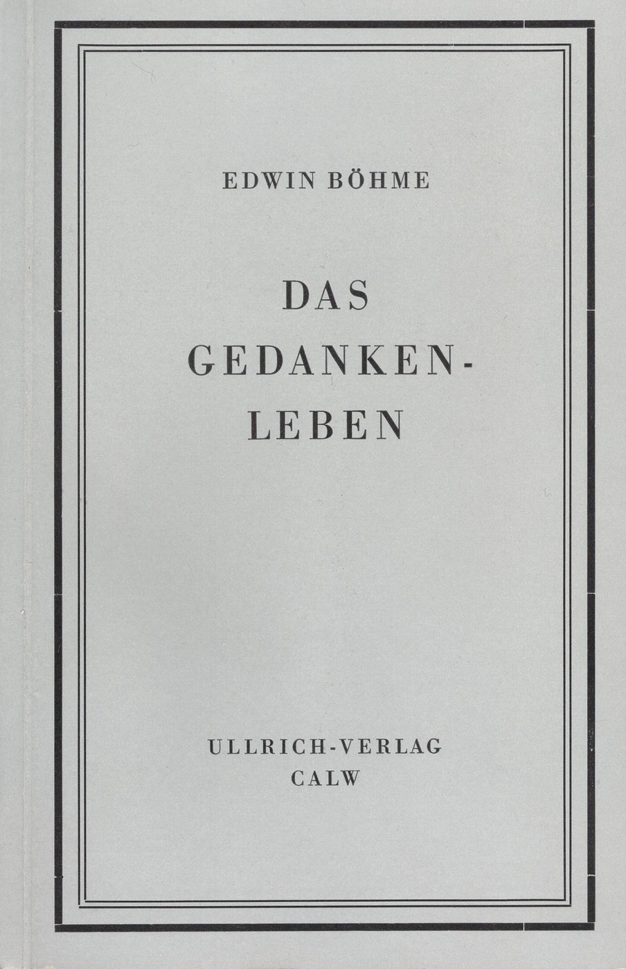 Edwin Böhme: Das Gedankenleben und seine BeherrschungWarum Gedankenbeherrschung mehr denn je nötig ist und wie man zu ihr gelangen kann. 59 Seiten.
