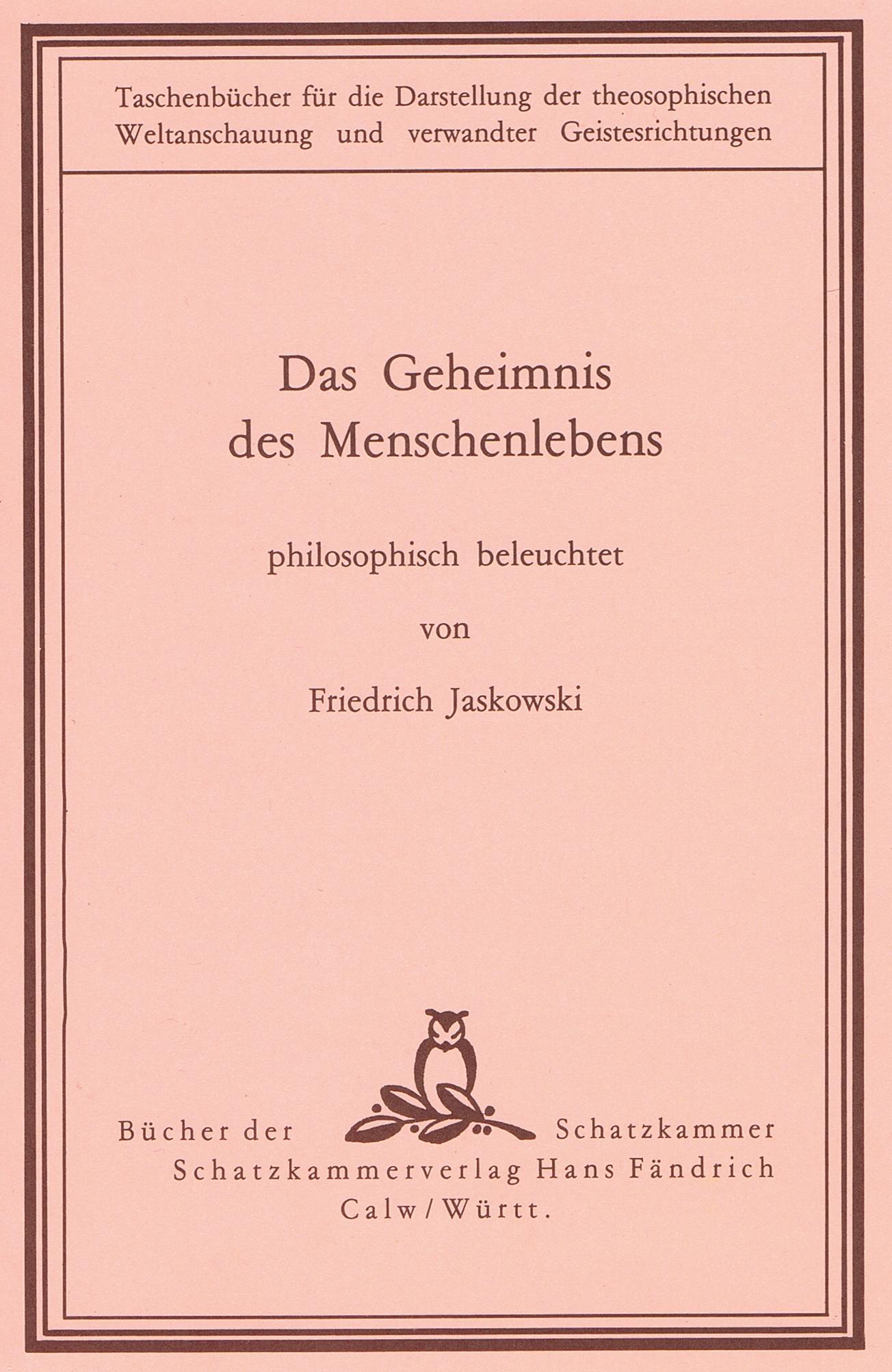 Friedrich Jaskowski: Das Geheimnis des MenschenlebensIn dieser Schrift gibt Friedrich Jaskowski Antworten auf die Fragen vieler nachdenklicher Menschen nach dem Sinn und zeigt einen Weg, auf dem innerer Friede erlangt werden kann.