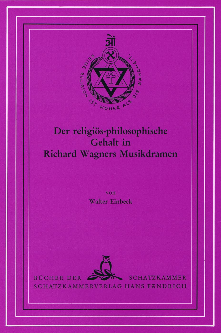 Walter Einbeck: Der religiös-philosophische Gehalt in Richard Wagners MusikdramenRichard Wagners Musikdramen erhalten hier eine bisher nicht erfolgte Deutung der symbolischen Bühnenvorgänge, wodurch das Kunstwerk in religiös-kosmischer Sicht erscheint. Nicht nur für den Musikfreund haben die Darlegungen in diesem Buch hohen Wert, sondern gleichermaßen für jeden, der an einem Verständnis der Symbolik moderner wie antiker Mysterienspiele interessiert ist. 147 Seiten.