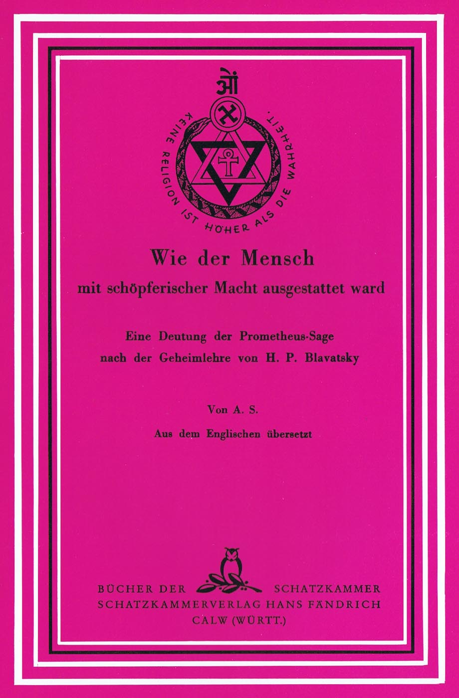 A. S.: Wie der Mensch mit schöpferischer Kraft ausgestattet wardEine Deutung der Prometheus-Sage nach der Geheimlehre von H. P. Blavatsky, übersetzt von Franz Hartmann.